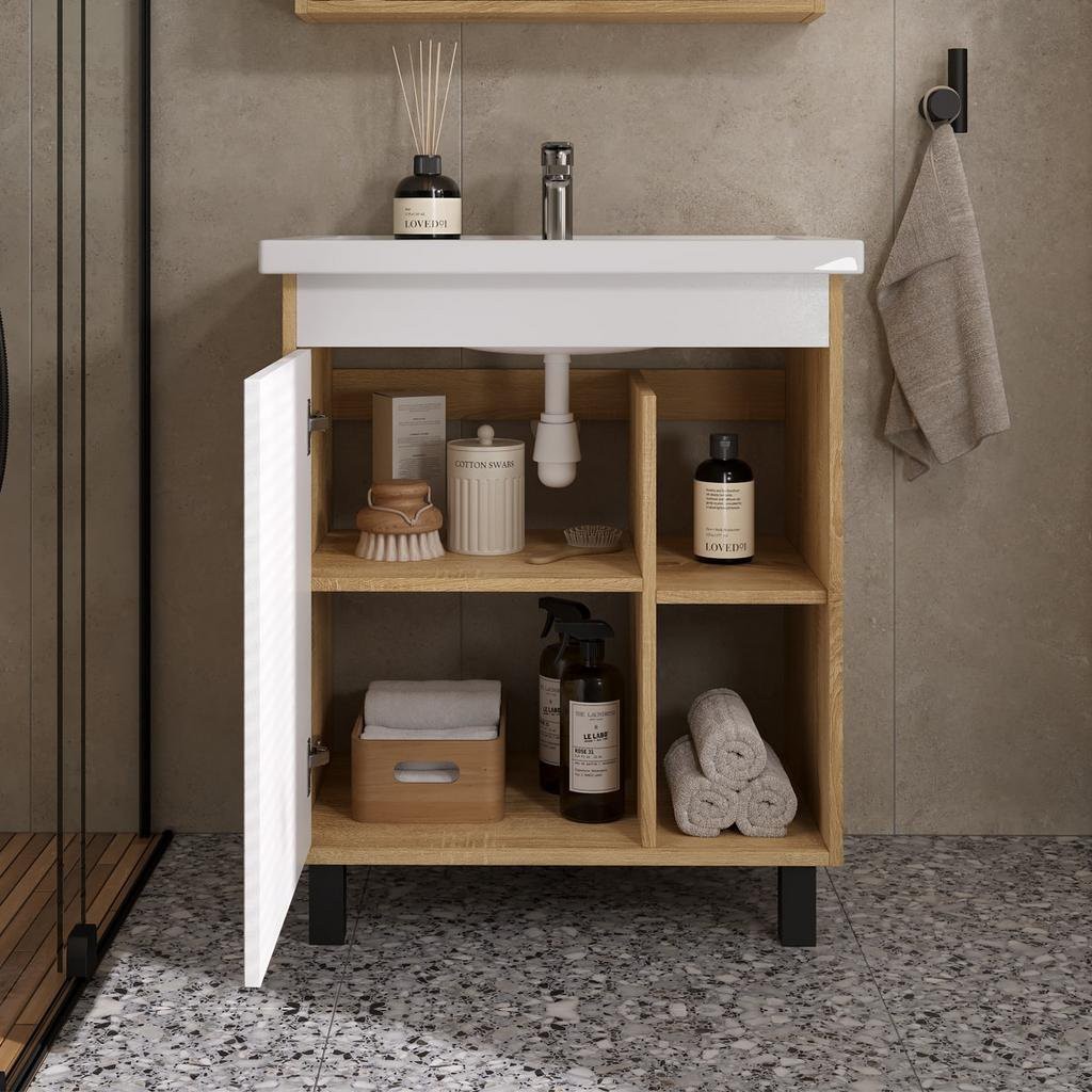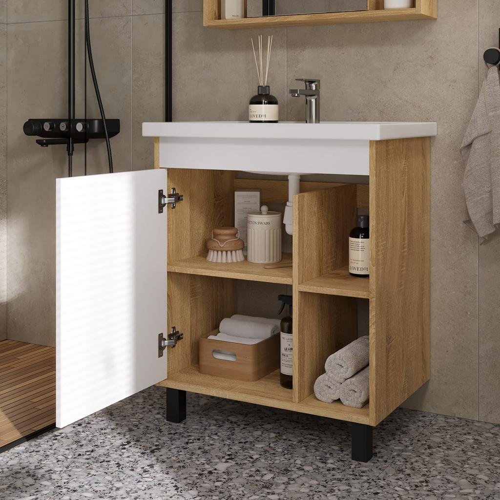 Тумба под умывальник VOLNA Osmond 70 (Фостер) светлое дерево - ширина: 65.8 см, глубина: 42.8 см, высота: 71 см, монтаж: Напольный