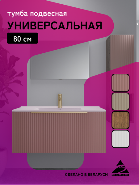 Тумба для ванной под умывальник ЗОВ Дублин 80 / DU80TSMFR (флавио античная роза). Совместимые модели - умывальник (Oliveeka S80), столешница (795х458 мм)