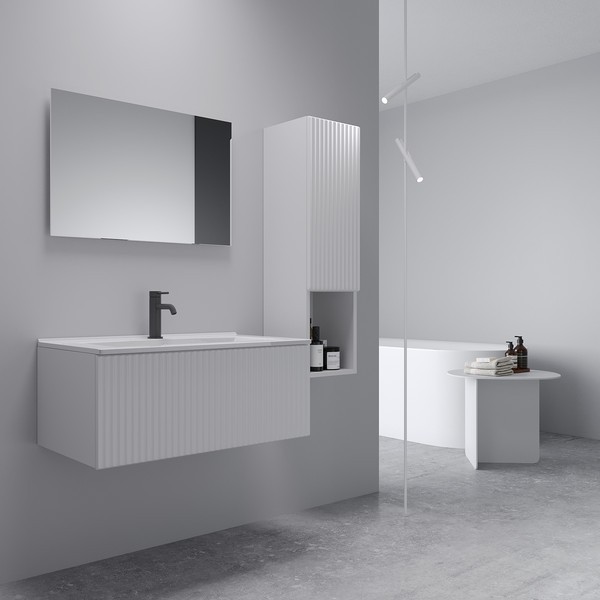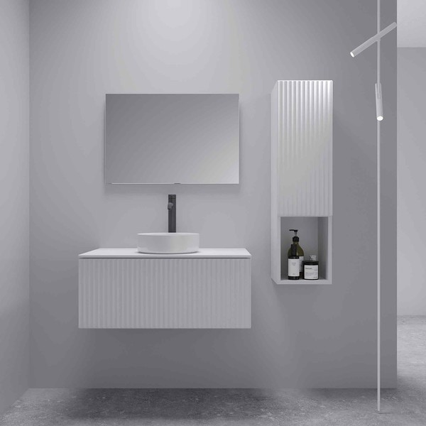Тумба для ванной под умывальник ЗОВ Кито 100 / K100LW0MFWPM (флавио белый). Совместимые модели - умывальник (Oliveeka S100), столешница (995х458 мм)
