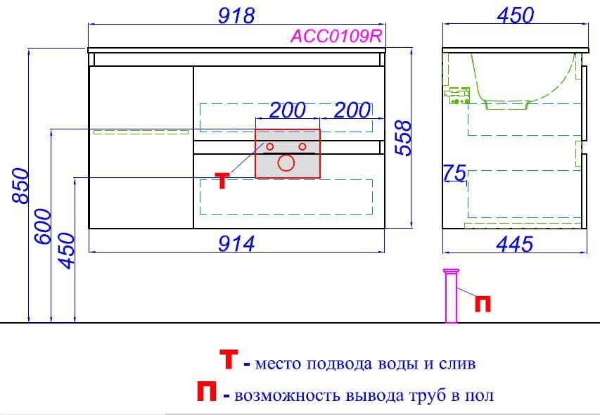 | Под стиральную машину: | нет |