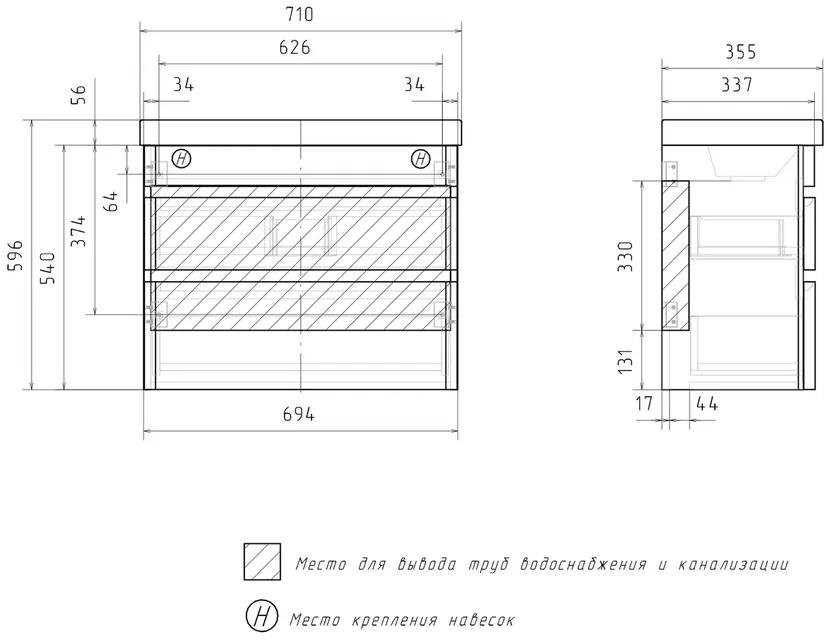 - Размеры (ШхГхВ): 71х35,5х59,6 см