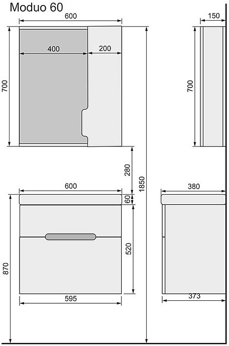 - Размеры (ШхГхВ): 59,5 х 37,3 x 70 см
