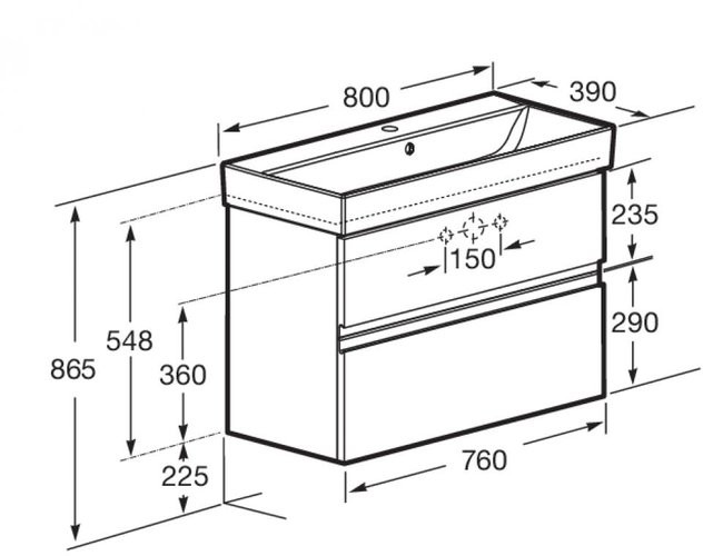 Тумба Roca Oleta 80 белый матовый с умывальником Roca Oleta, ширина: 76 см, глубина: 37,4 см, высота: 54,8 см