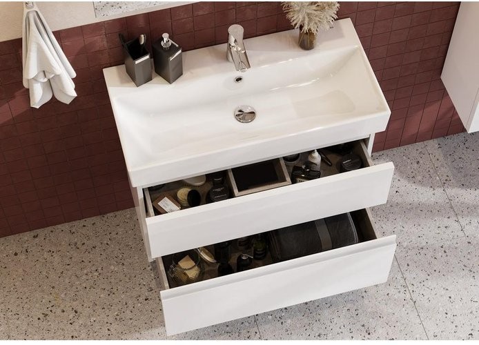 Тумба оснащена двумя выдвижными ящиками на надежных направляющих Hettich, обеспечивающих плавное и бесшумное скольжение, а также долговечность и комфорт в использовании. Скрытый монтаж сохраняет изящный внешний вид мебели, а возможность полного выдвижения ящиков гарантирует быстрый и удобный доступ ко всем необходимым вещам.