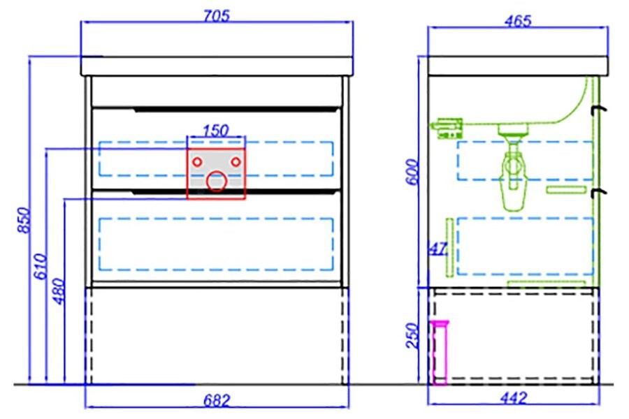 | Ширина с умывальником, см: | 70.5 |