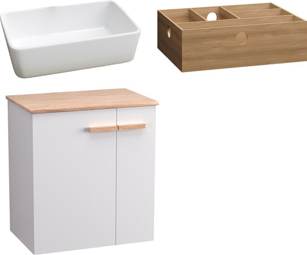 Тумба с умывальником Lauter Adri 59 + 21674A (белый глянец, с органайзером 32)