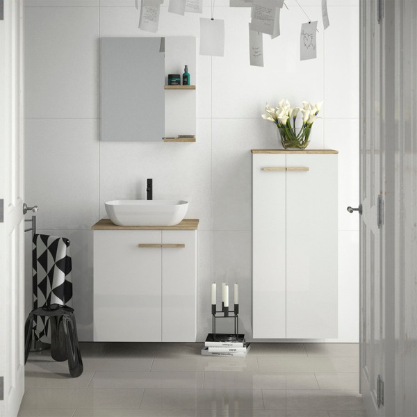 Тумба для ванной с умывальником Lauter Adri 59 + 21674A (белый глянец).