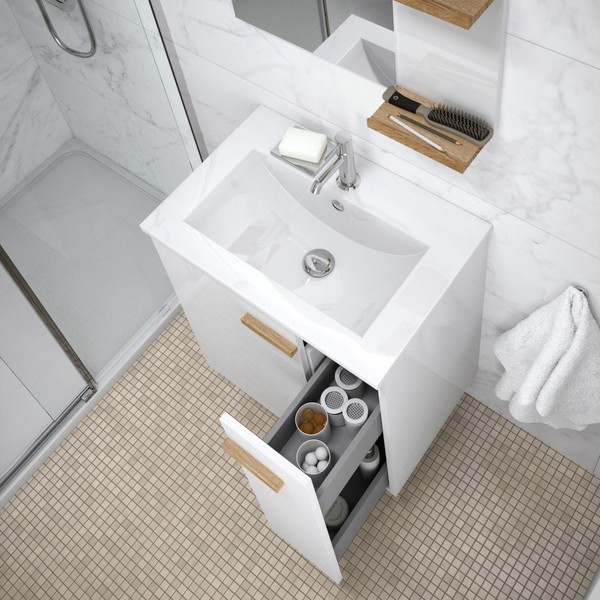 Тумба с умывальником Lauter Adri 59 + 21674A (белый глянец)