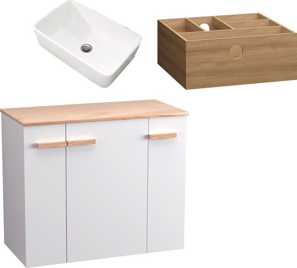 Тумба для ванной с умывальником Lauter Adri 79 + 21674A (белый глянец, с органайзером 23).