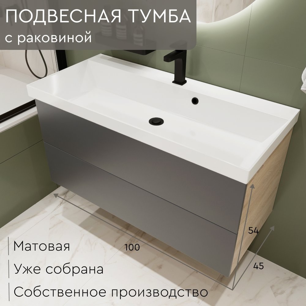 Тумба с умывальником Mebelvann Alid_G_1000_540_450 антрацит - ширина: 100 см, глубина: 45 см, высота: 54 см, монтаж: Подвесной