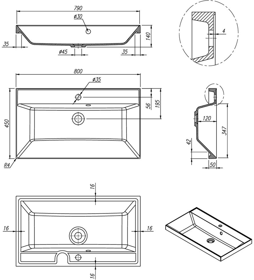 Тумба с умывальником Mebelvann Alid_W_800_540_450 белый - ширина: 80 см, глубина: 45 см, высота: 54 см, монтаж: Подвесной