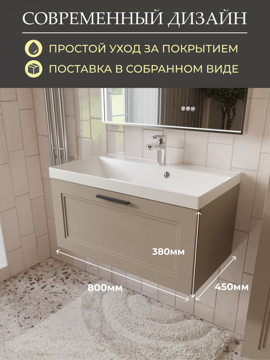 Тумба с умывальником Mebelvann Anik_B_800_380_450 бежевый - ширина: 80 см, глубина: 45 см, высота: 38 см, монтаж: Подвесной
