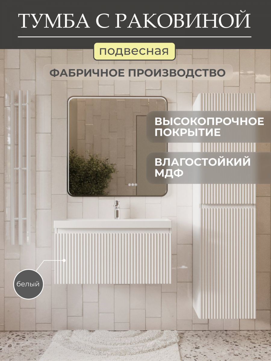 Тумба с умывальником Mebelvann Eric_W_800_380_450 белый - ширина: 80 см, глубина: 45 см, высота: 38 см, монтаж: Подвесной