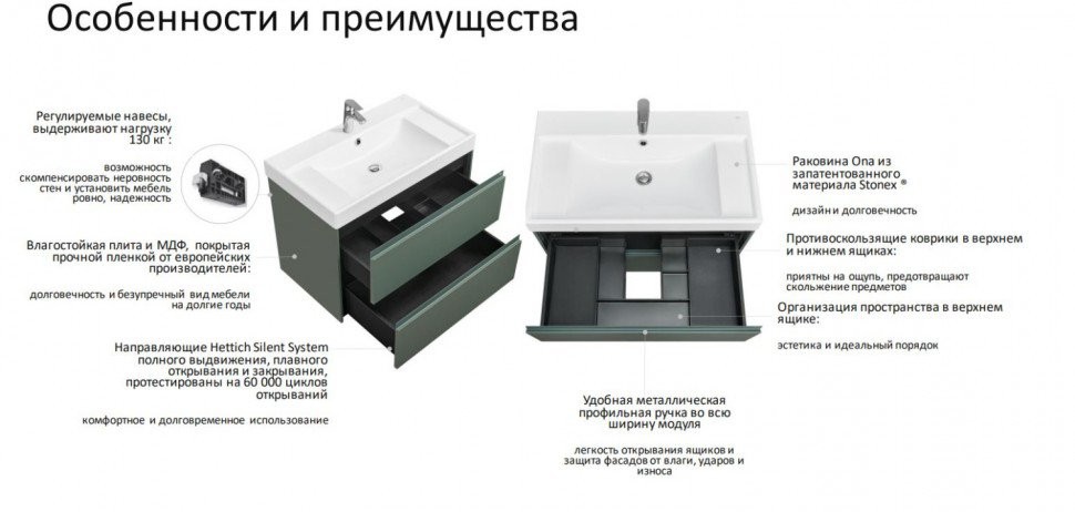 Тумба с умывальником Roca Ona 60 см 857613513 + 32799E000 зеленый матовый - ширина: 60 см, глубина: 45 см, высота: 57 см, монтаж: Подвесной