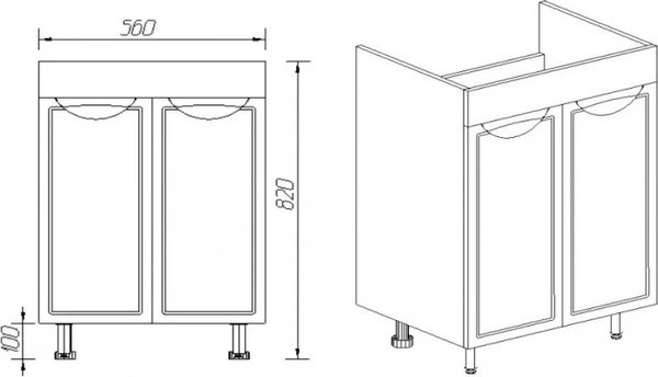 Тумба для ванной с умывальником Viant Лима Como 60 / VLIM60CO-T2ST+S-UM-COM60/1-w.