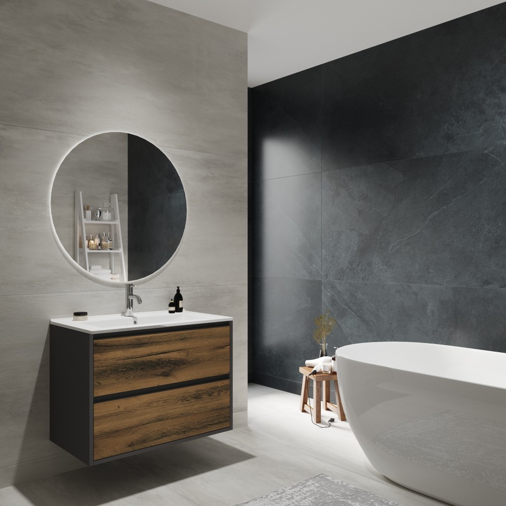 Тумба для ванной с умывальником ЗОВ Парма 100 / P100LAN0MAMC1B-OL100 (антрацит/аттик).