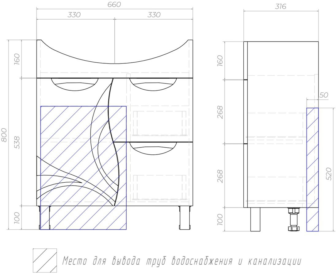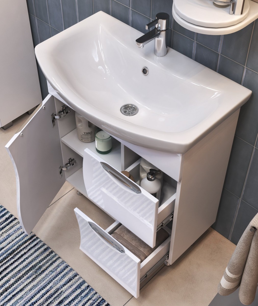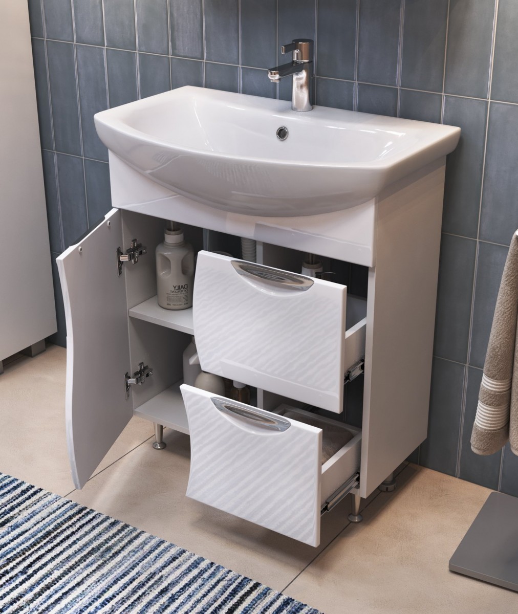Тумба Vigo Diana 700-1-2 под умывальник Балтика, белый глянец - ширина: 66 см, глубина: 31 см, высота: 80 см, монтаж: Напольный