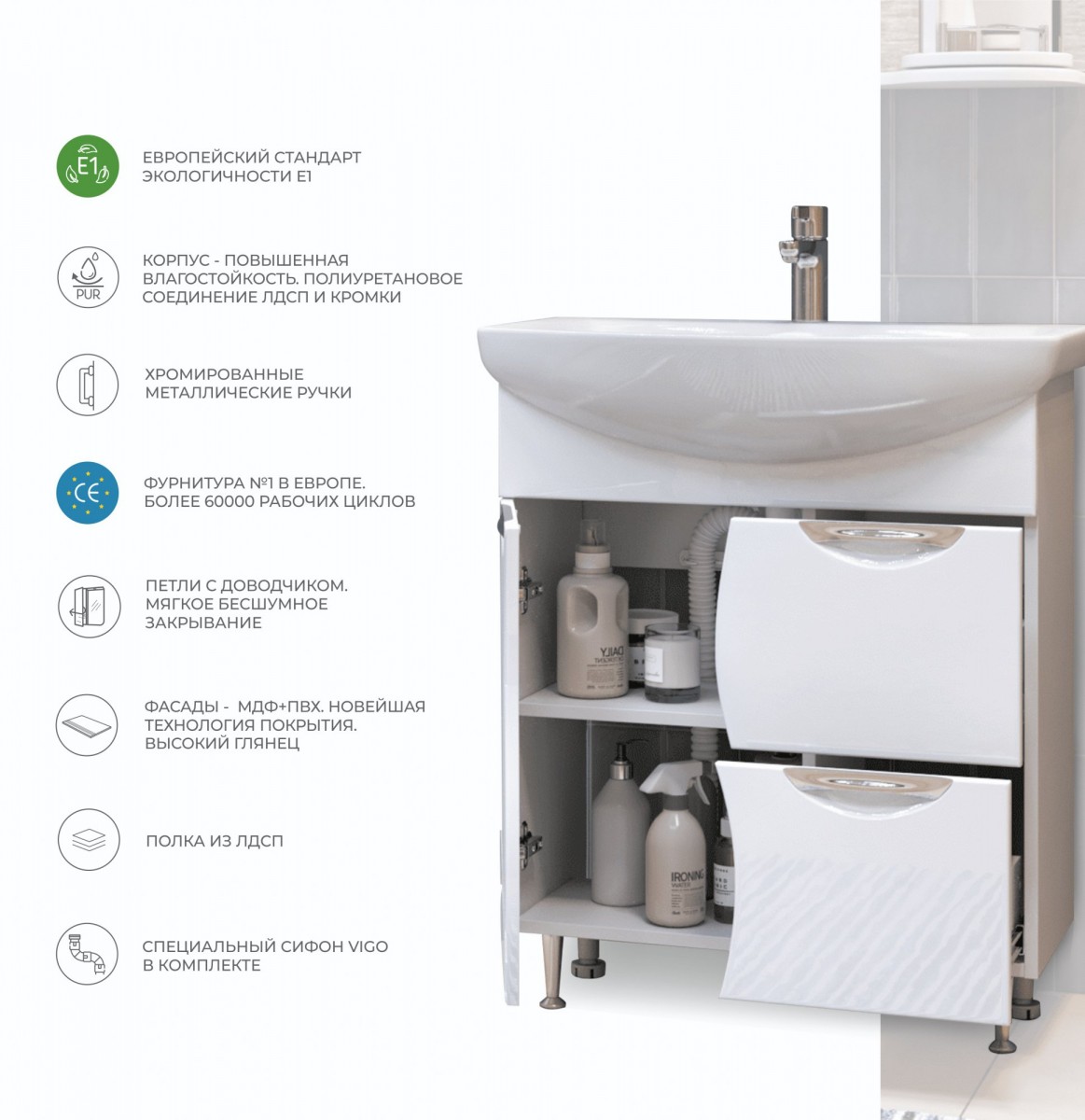 Тумба Vigo Diana 700-1-2 под умывальник Балтика, белый глянец