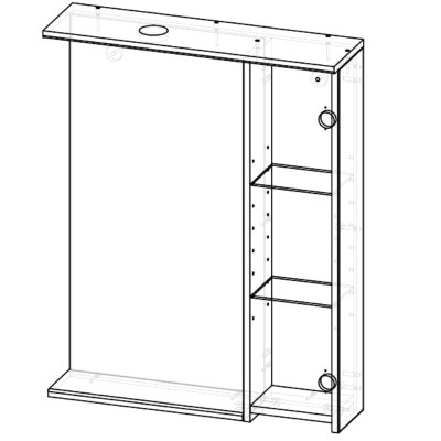 Монтаж:- навесы регулируемые центральные - 2шт., закреплены в задней стенке шкафа;- шуруп Г-образный с дюбелем для крепления к стене – 2 шт.Конструкция в собранном виде:-шкаф с распашной дверью на петлях с доводчиком;-открытие - за нижнюю часть фасада;-1-о отделение 182 мм, внутри 2 полки – стекло 4 мм.
