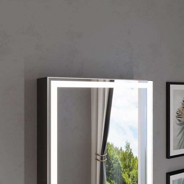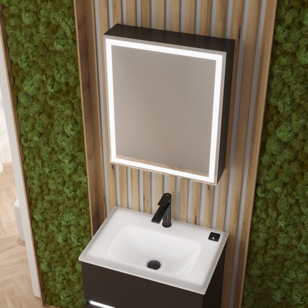 Шкаф с зеркалом для ванной Lauter Emma (с подсветкой, черный мат)
