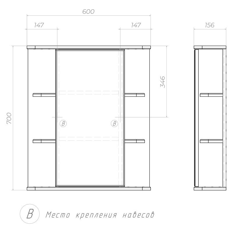 Шкаф с зеркалом для ванной Vigo Nova 600