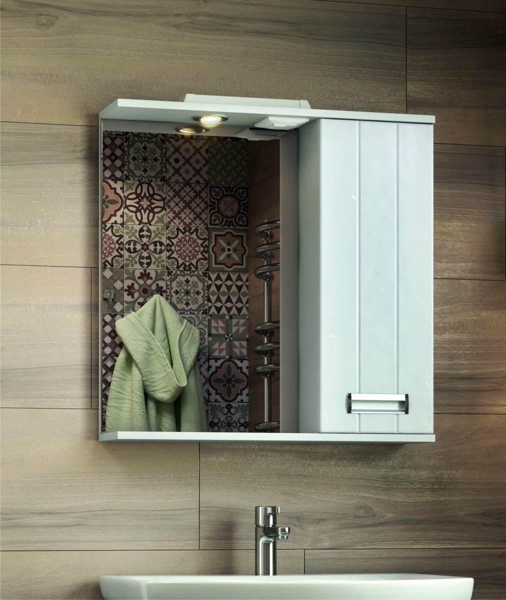 Шкаф с зеркалом VIGO Diana 700 z.DIA.70.R.El правый белый, ширина: 70.5 см, глубина: 15.6 см, высота: 70 см, с подсветкой