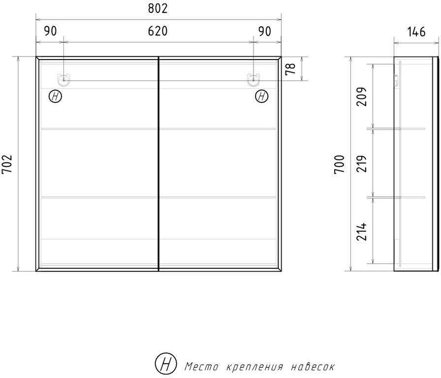 Шкаф с зеркалом Volna Geometry 80 белый