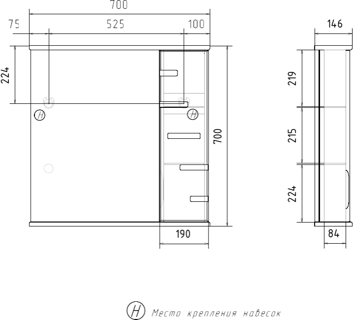 - Шкафчик: с правой стороны