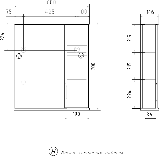 - Размеры (ШхГхВ): 60х14,6х70 см