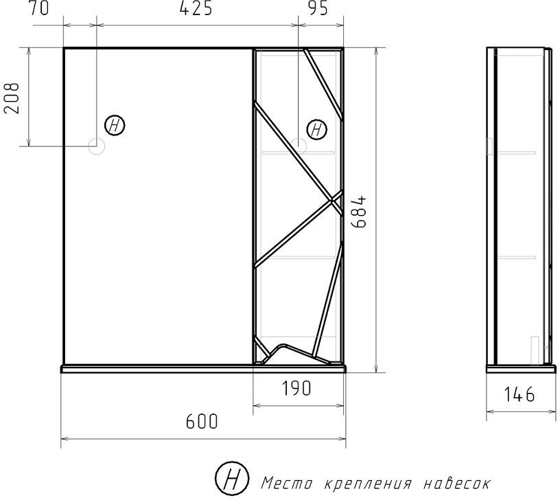 - Размеры (ШхГхВ): 60х14,6х68,4 см