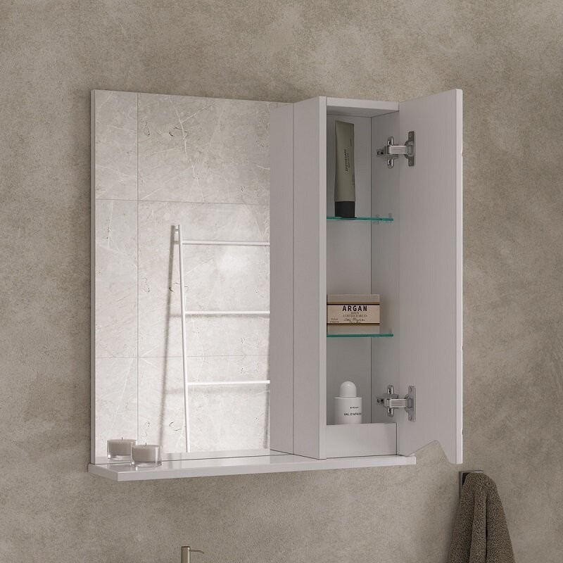 Шкаф с зеркалом Volna Pronto 60 белый (правый), ширина: 60 см, глубина: 14.6 см, высота: 68.4 см, без подсветки