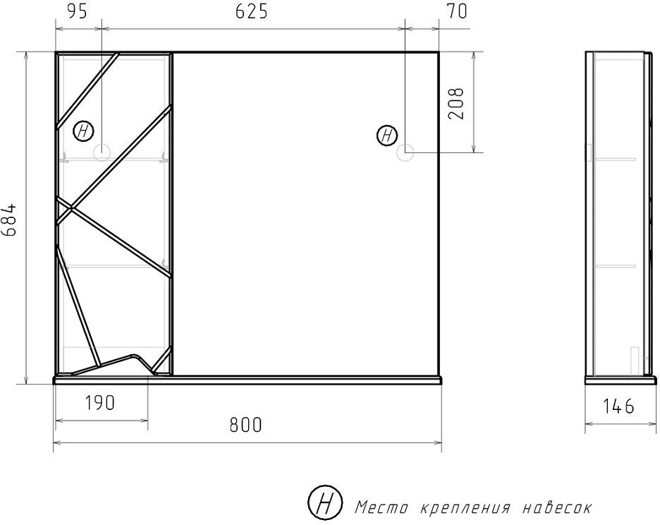 Шкаф с зеркалом Volna Pronto 80 белый (левый), ширина: 80 см, глубина: 14.6 см, высота: 68.4 см, без подсветки