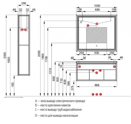 - Тумба-умывальник Уэльс 100 Тем Шок/Раковина Брук 1000