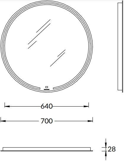 Зеркало MiO выполнено с деликатной подсветкой по периметру. Светодиодная подсветка включается одним прикосновением к сенсору в нижней части зеркального полотна, там же нанесён логотип KERAMA MARAZZI. Имеется встроенный диммер.