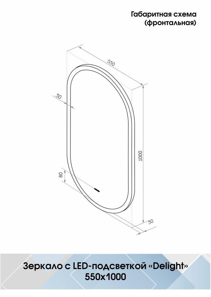 Зеркало Delight LED 550х1000 с бесконтактным сенсором - ширина: 55 см, высота: 100 см, с подсветкой