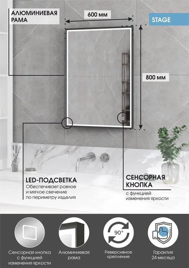 Зеркало "Stage Grey Led" 600х800 с бесконтактным сенсором