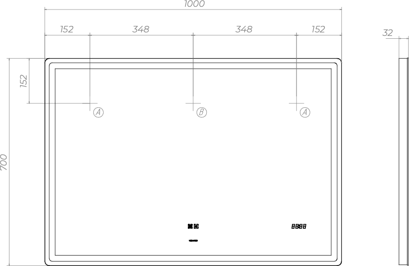 Зеркало Geometry Luxe 1000 бесконтактное - ширина: 100 см, высота: 70 см, с подсветкой