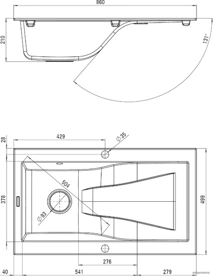 | Отверстие под смеситель: | да |