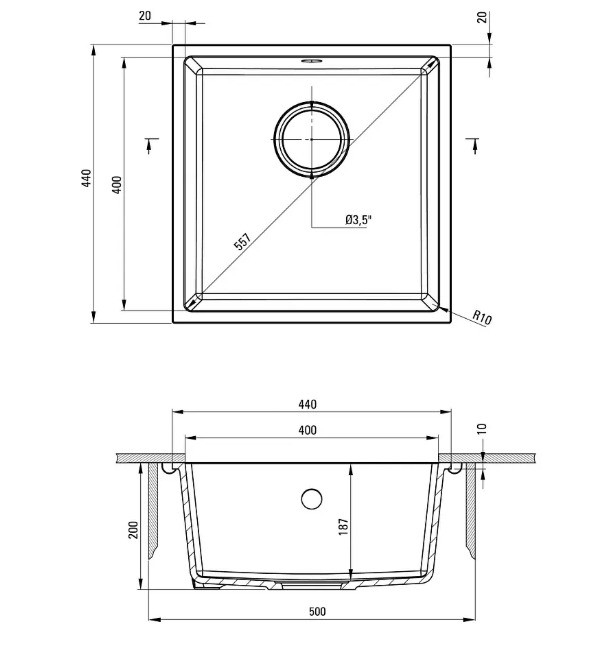 Мойка кухонная 44 см Deante Corda ZQA_A10A, врезная, материал: искусственный камень, поверхность: матовая, ширина: 44 см, длина: 44 см. Сифон в комплекте. Гарантия: 18 лет.