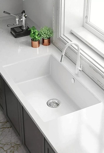 Кухонная мойка Deante Corda ZQA_A10A — врезная гранитная мойка квадратной формы, без крыла. Оптимальная глубина чаши не даст каплям попадать на поверхность столешницы. Мойка из гранита обладает высокой ударопрочностью и устойчивостью к высоким температурам, а также антисептическими свойствами. В комплекте сифон Space Saver с возможностью подключения стиральной или посудомоечной машины.