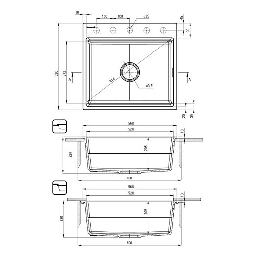 Мойка кухонная 56 см Deante Magnetic ZRM_G10A, врезная, материал: искусственный камень, поверхность: матовая, ширина: 56 см, длина: 52 см. Сифон в комплекте. Гарантия: 18 лет.