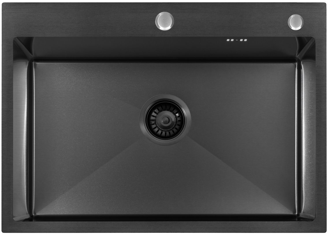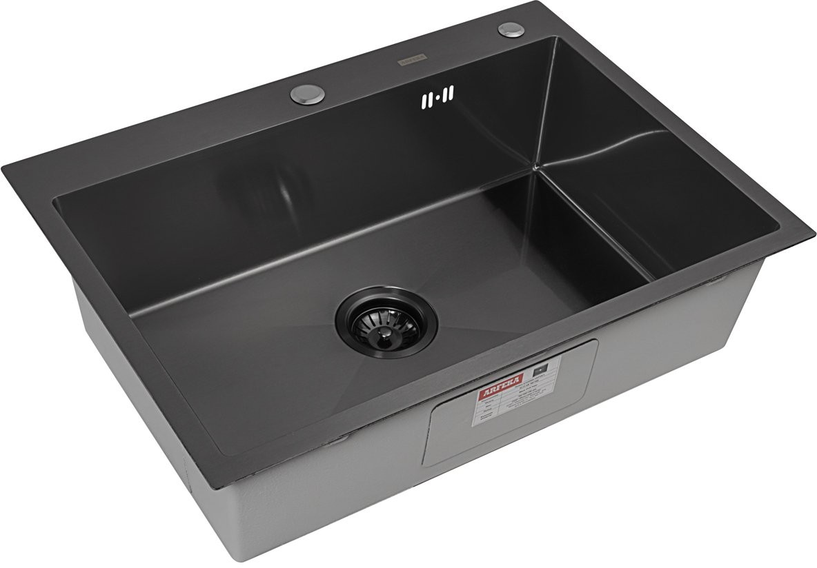 Мойка для кухни ARFEKA ECO AR 700*500 BLACK PVD NANO, вороненая сталь, Ширина: 70 см, Длина: 50 см, Глубина чаши: 20 см, Цвет: Вороненая сталь, Материал: Нержавеющая сталь