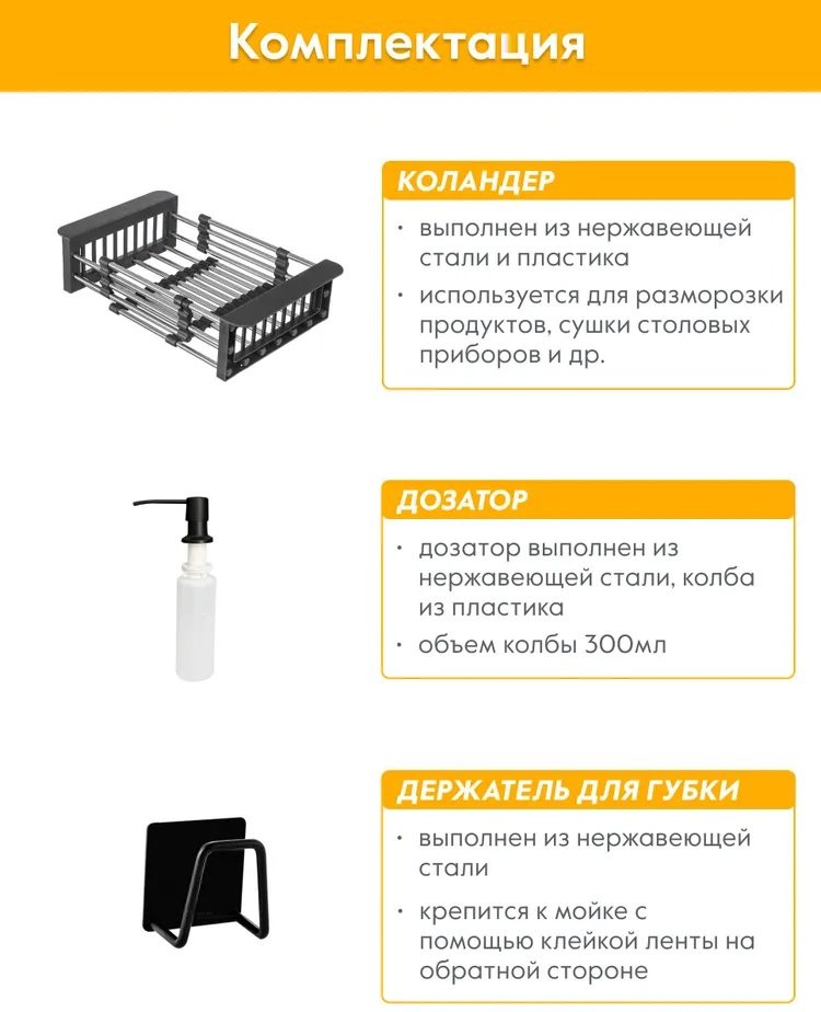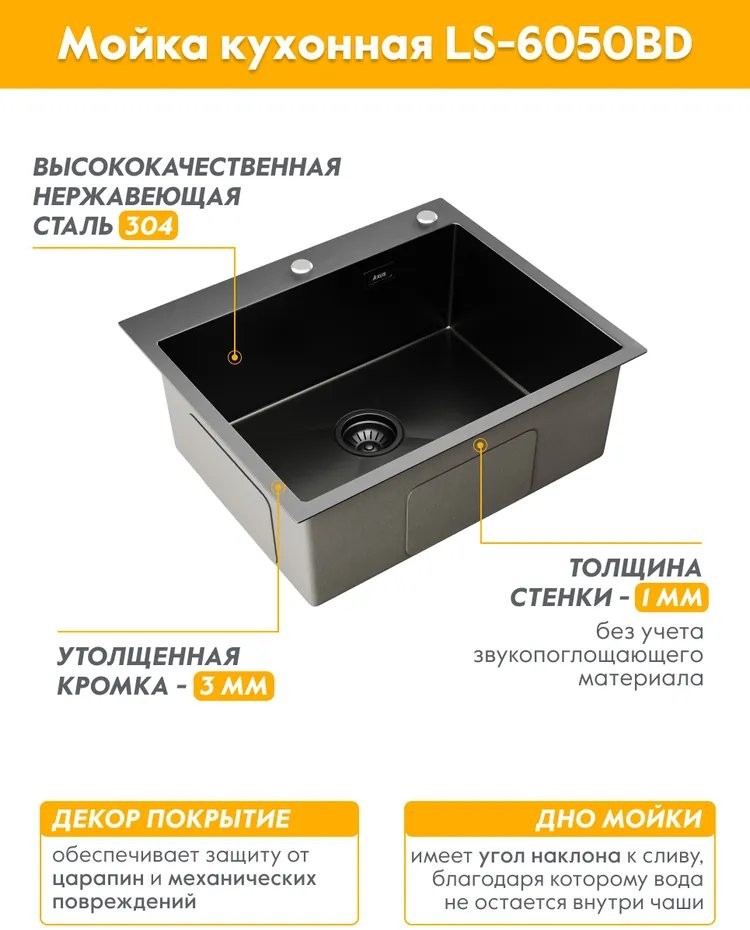 Кухонная мойка Axus LS-6050BD 60x50 с дозатором, графит