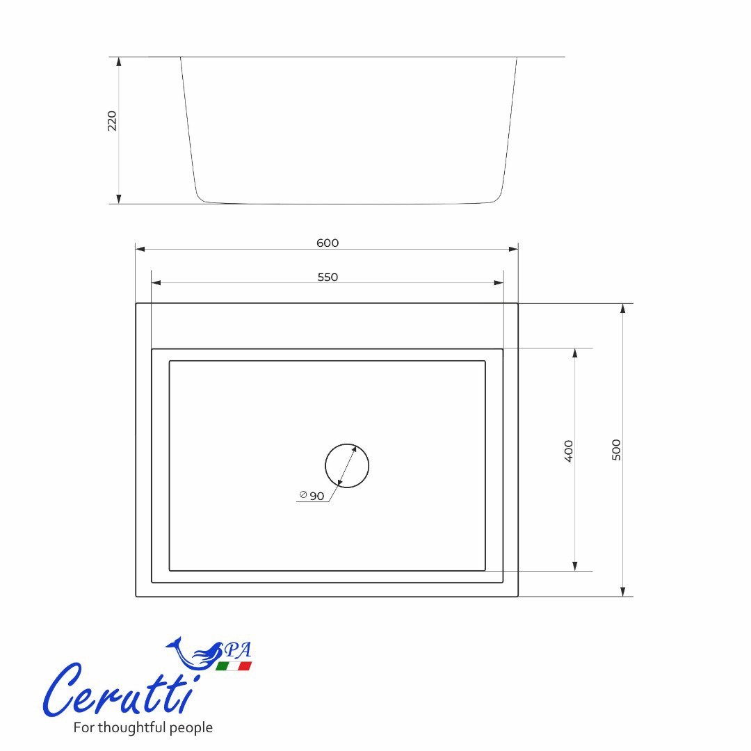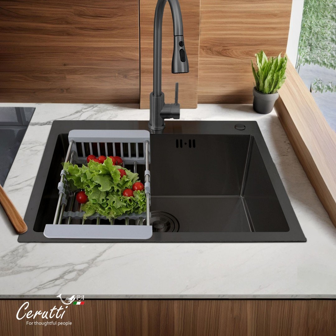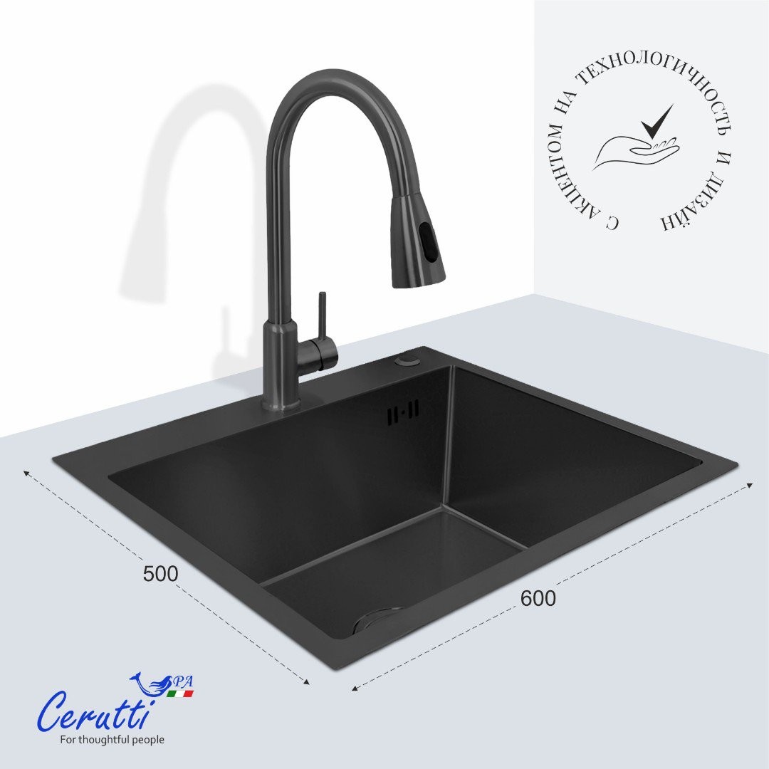 Мойка для кухни CeruttiSpa Nano Black Gloria60B 60x50 графит, Ширина: 60 см, Длина: 50 см, Глубина чаши: 22 см, Цвет: Графит, Материал: Нержавеющая сталь