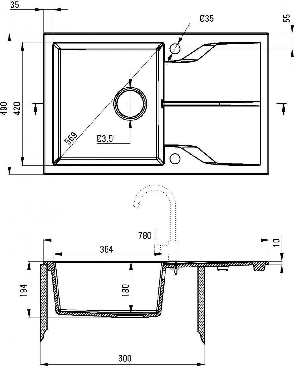 - Отлив: 3,5′′