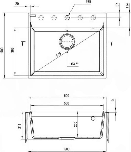 Мойка кухонная Deante Corio ZRC G10A, врезная, материал: искусственный гранит, поверхность: матовая, ширина: 60 см, длина: 50 см. Сифон в комплекте.