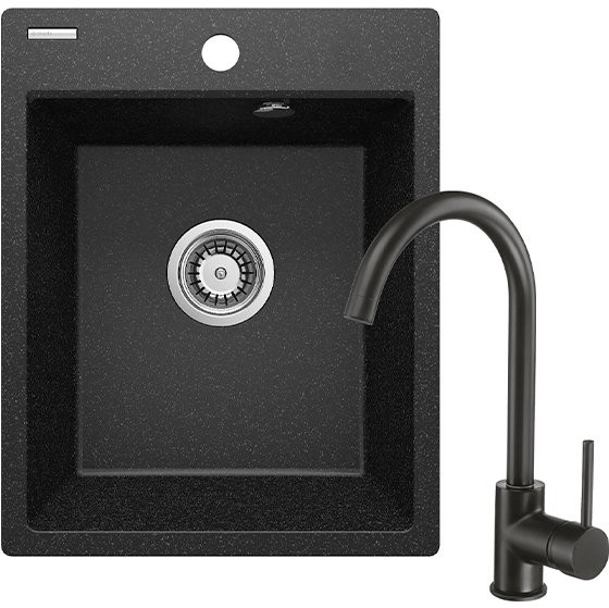 Кухонная мойка Deante Corio ZRCB2103 40x50 графит с сифоном и смесителем - ширина: 50 см, длина: 40 см, глубина чаши: 19.8 см, цвет: Графит, материал: Гранит