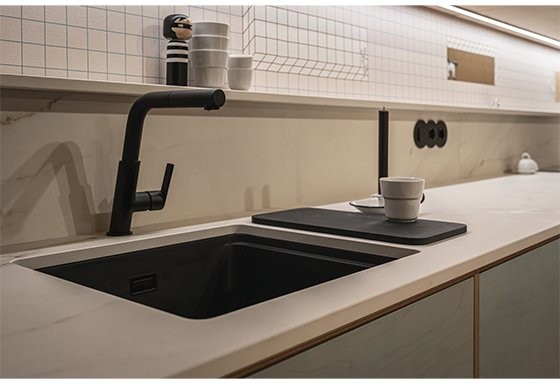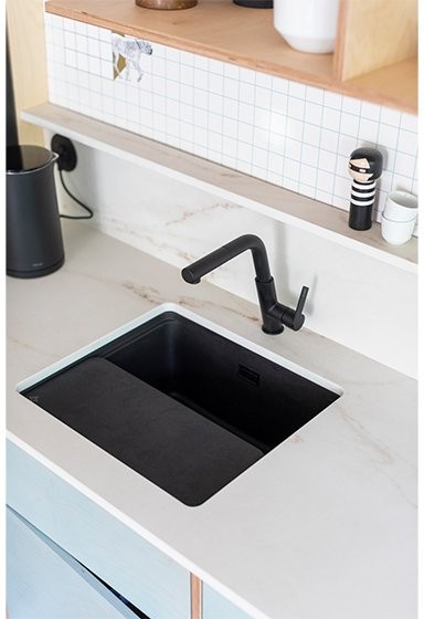 Глубокая чаша. Мойки Momi обладают впечатляющей вместительностью, что делает их практичными на вашей кухне. В них легко помещаются большие кастрюли или противни прямо из духовки, что создает пространство, обеспечивающее комфорт и свободу действий.