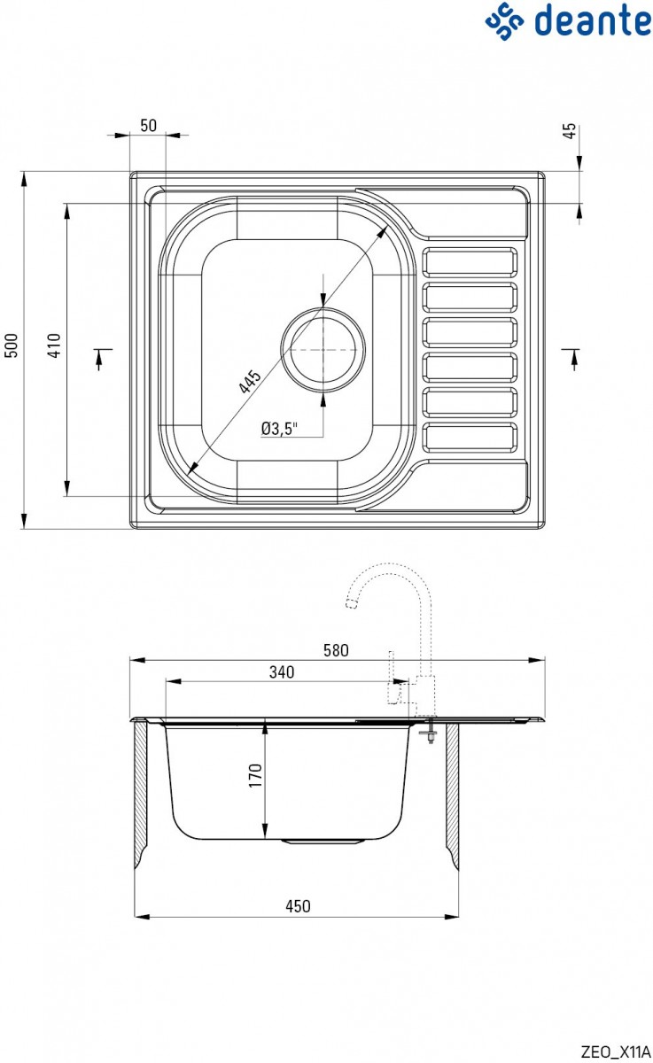 Мойка для кухни Deante Soul ZEO 011A 58x50 сатин, Ширина: 58 см, Длина: 50 см, Глубина чаши: 17 см, Цвет: Сатин, Материал: Нержавеющая сталь