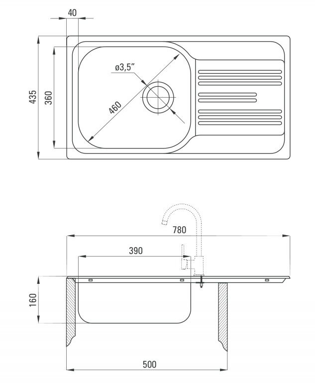 Кухонная мойка Deante Xylo ZEX_311B 78x50 декор - ширина: 78 см, длина: 50 см, глубина чаши: 19 см, цвет: Хром, материал: Нержавеющая сталь